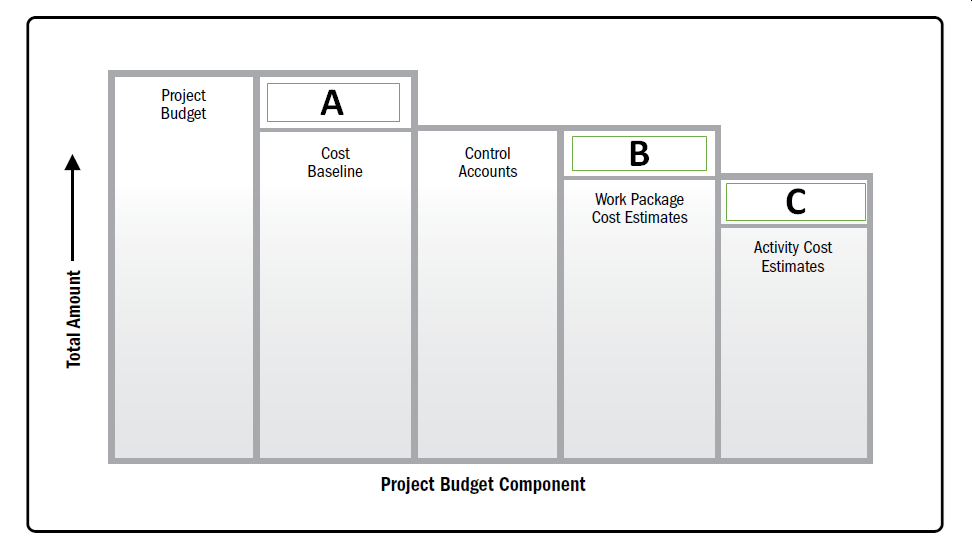 A budget is built and approved for the project you lead. Where in the figure is the management reserve placed? (On the real PMP exam you may be asked to provide your answer by clicking the correct area in the image. But here, you are asked to select the answer below.)